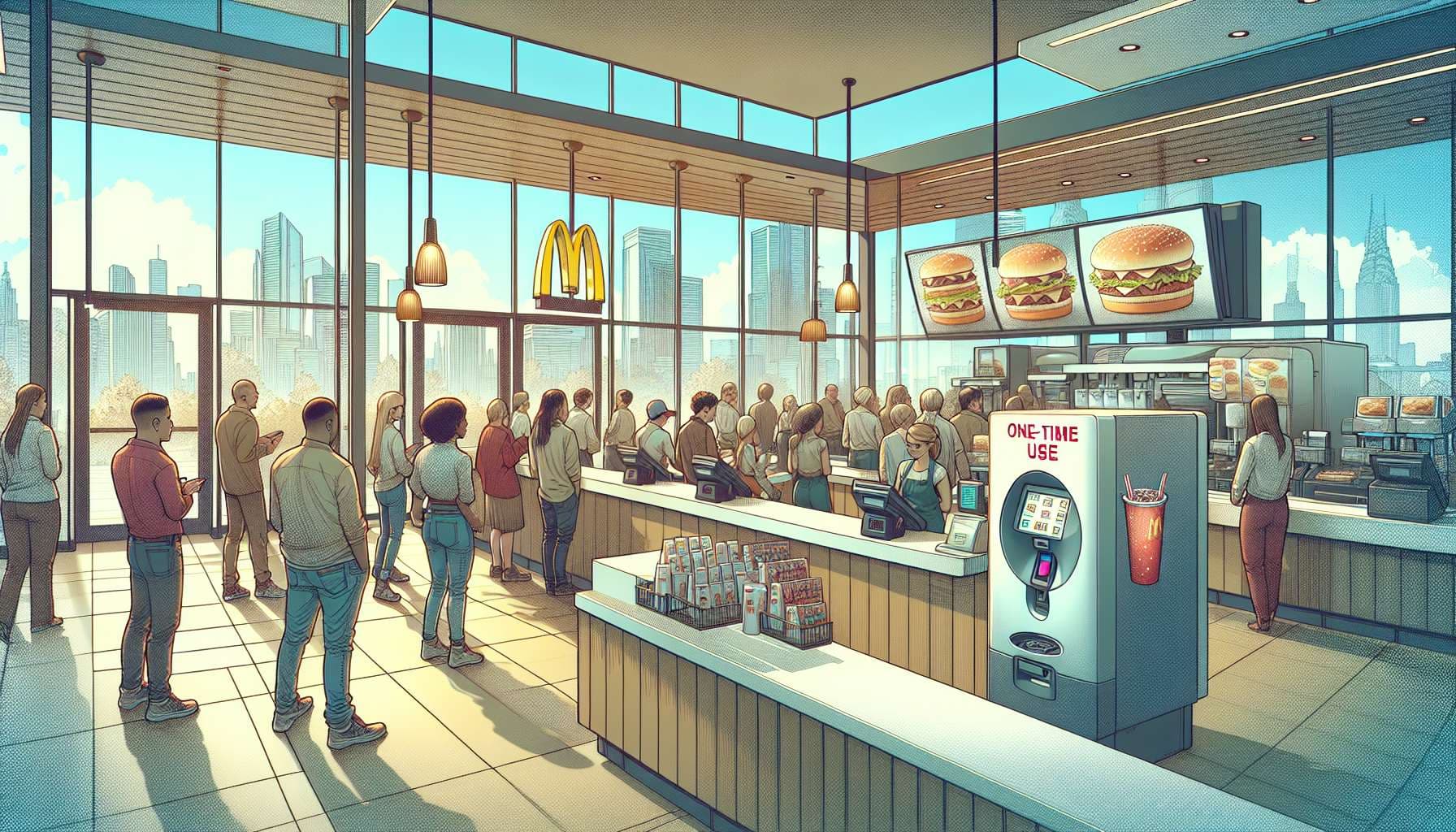Will a majority of McDonalds in the US stop offering free refill for softdrinks before the end of 2028?