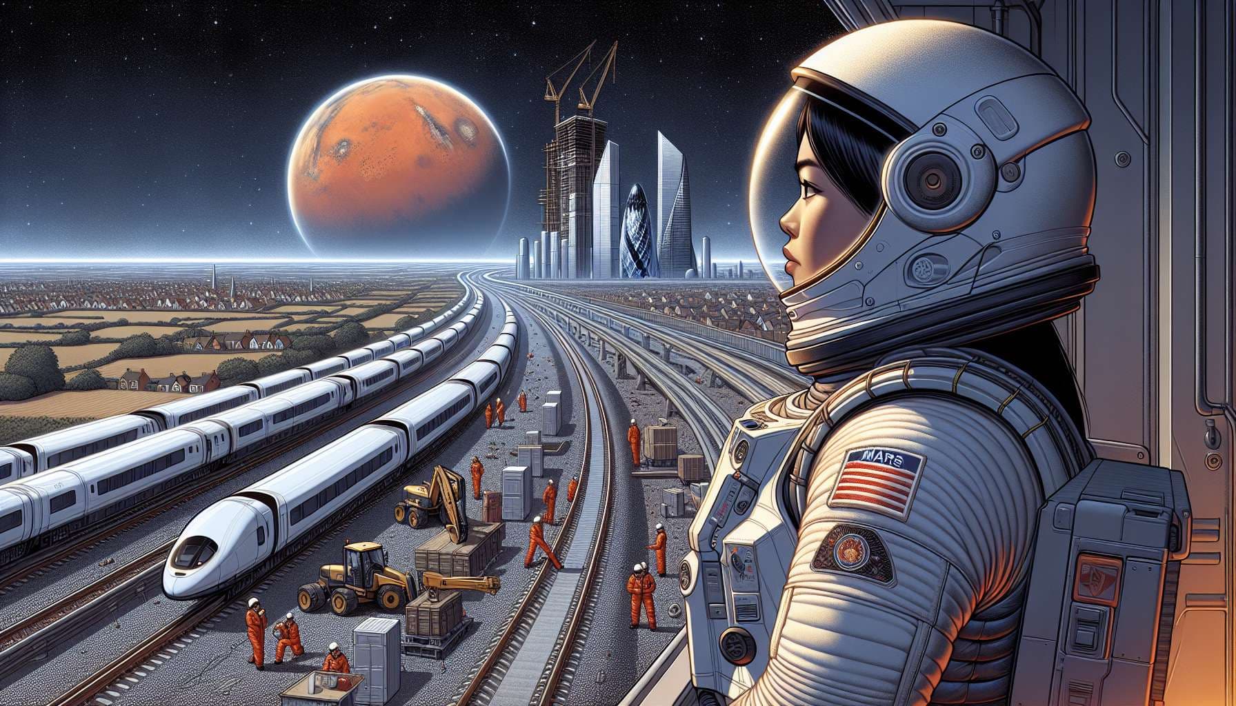 Will a human land on Mars aboard Starship before high-speed rail is built between London and Manchester?